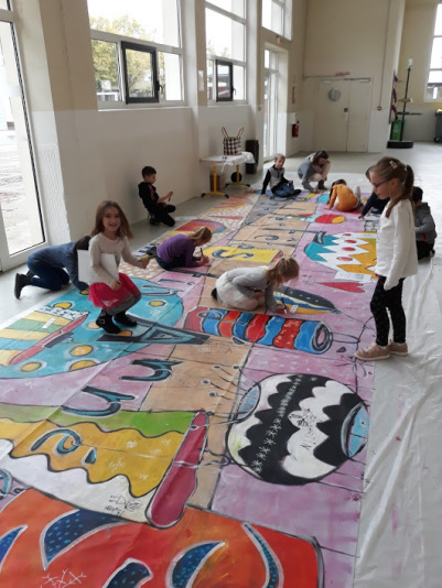 Réalisation d'une Banderole de 8m x 3m avec les classes de CP de Mme Baal et Mme Balzer