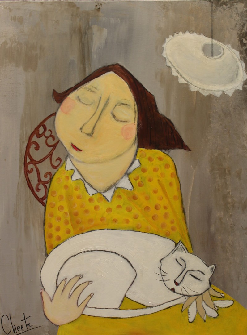 Réalisation d'une peinture d'après la représentation d'un objet vintage, téléphone ou autre.